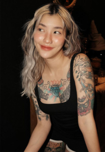 น้องน้ำ ด้วยรูปร่างดี มีรอยสักอยู่ในช่วงบนของเธอ ทั้งตรงหน้าอกและตรงต้นแขน เป็นอะไรที่สวยสะดุดตาเอามากๆ ถึงแม้ว่าเธอจะมีรอยสักแต่ก็ไม่ได้ทำให้ความสวยของเธอดูดรอปลงไปเลย หนำซ้ำยังช่วยเพิ่มความดูดี โดดเด่น และเป็นเอกลักษณ์เฉพาะตัวอีกต่างหาก ด้วยหน้าตาของเธอที่ดูดีมีเสน่ห์ชวนมองอยู่แล้ว รอยสักของเธอส่งเสริมให้เธอดูน่ามองมากยิ่งขึ้นไปอีก ทั้งดวงตาที่ดูกลมโต มีประกายแวววาวอยู่ในนัยน์ตา ที่ดูแวววาวสดใสของเธอนั้น ยิ่งทำให้เราหลงเสน่ห์เหมือนดั่งต้องมนต์สะกดด้วยซ้ำ